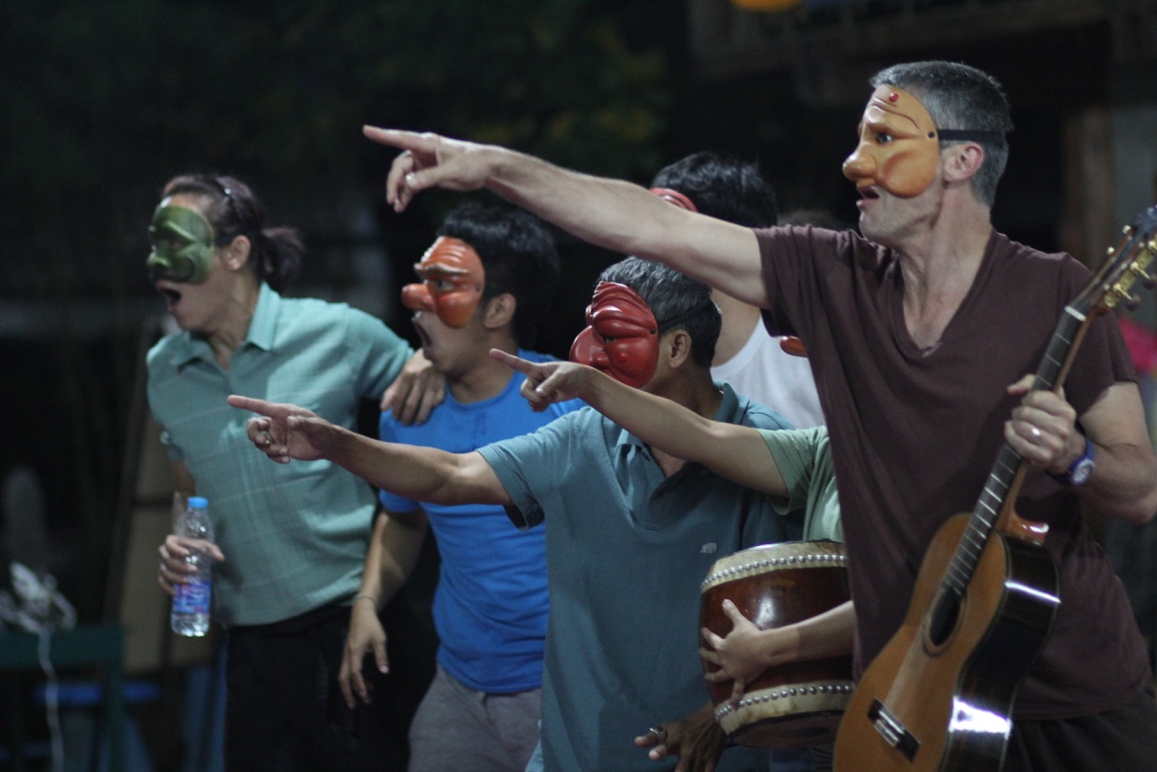 The Makhampom Theatre Group was founded in 1980, growing out of the pro-democracy movement of the 1970s. The group developed as a community of theatre volunteers, trained in theatre performance and workshop facilitation and engaged in a program of community and touring theatre activities within Thailand and internationally. In the early 2000s, Makhampom became a Foundation, working in four program areas —— Performance, Education, Community, and International. This phase resulted in several new developments: (i) the creation of the Makhampom Art Space in rural northern Thailand as the locus for all community and hosting programs; (ii) an expanded practice in refugee and conflict areas led to a focus on conflict transformation; (iii) a national role in facilitating 40 Thai youth theatre groups; (iv) a social enterprise program, involving Study Tours and multiple international hosting program, allowing the group financial independence; and (v) the Dialogue Theatre project in response to political conflict and dictatorship.